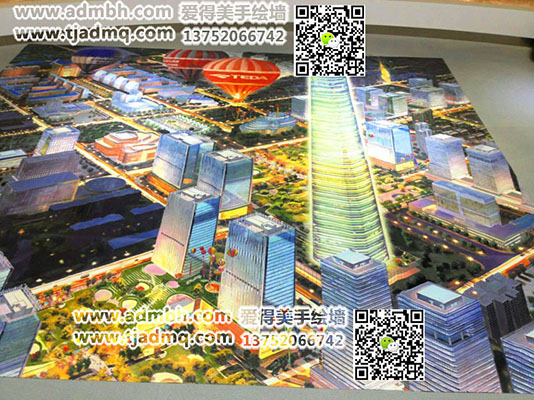 为天津塘沽开发区三大街管委会画的3d立体画彩绘,客户要求迎接活动,画出开发区建筑的特色,宏伟的建筑符合天津经济文化特点。