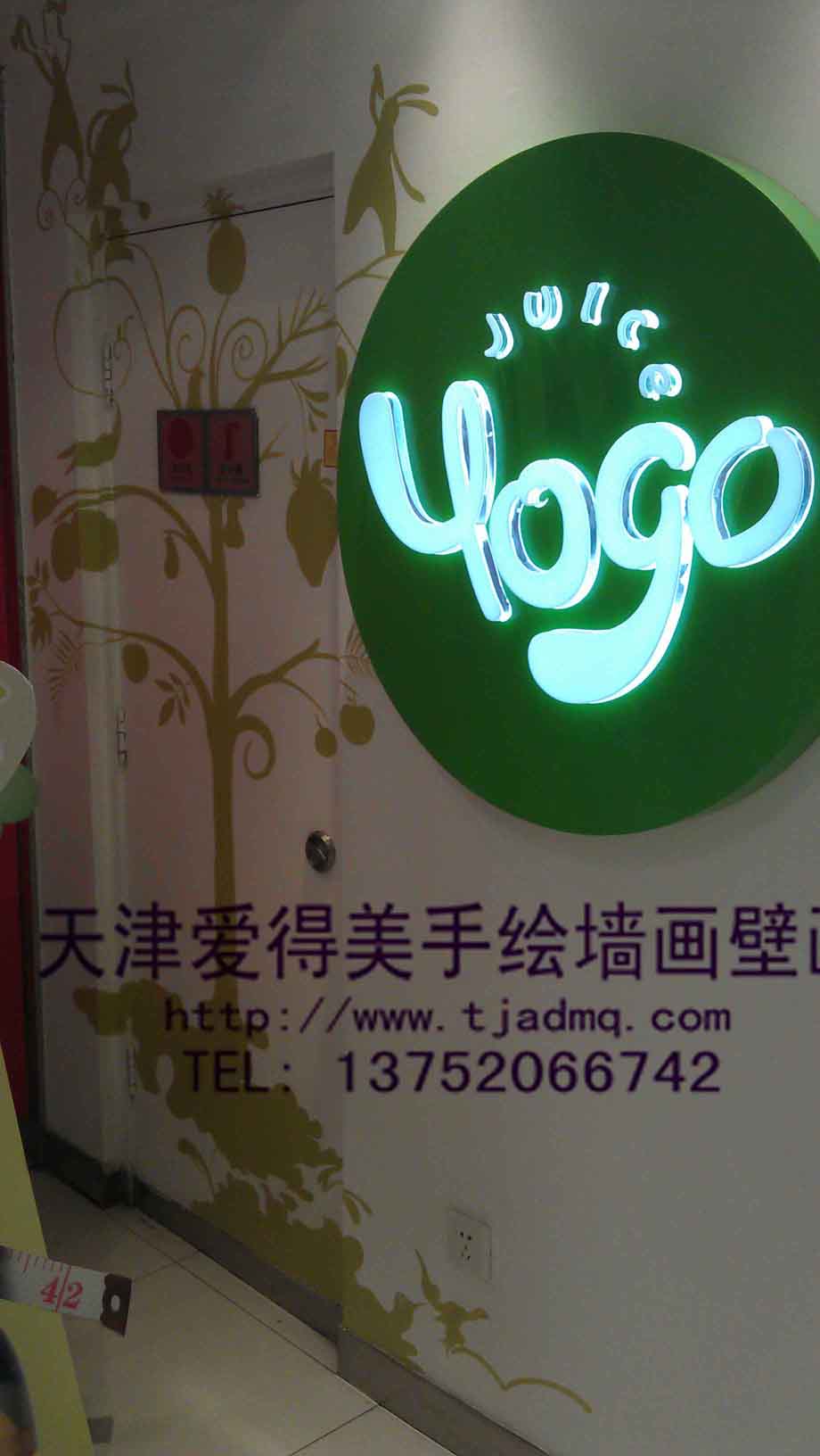 作者:爱得美 来源:未知 日期:2012-8-6 0:41:55 人气: 标签:天津手绘墙 天津墙绘 天津彩绘墙 优果饮品店
